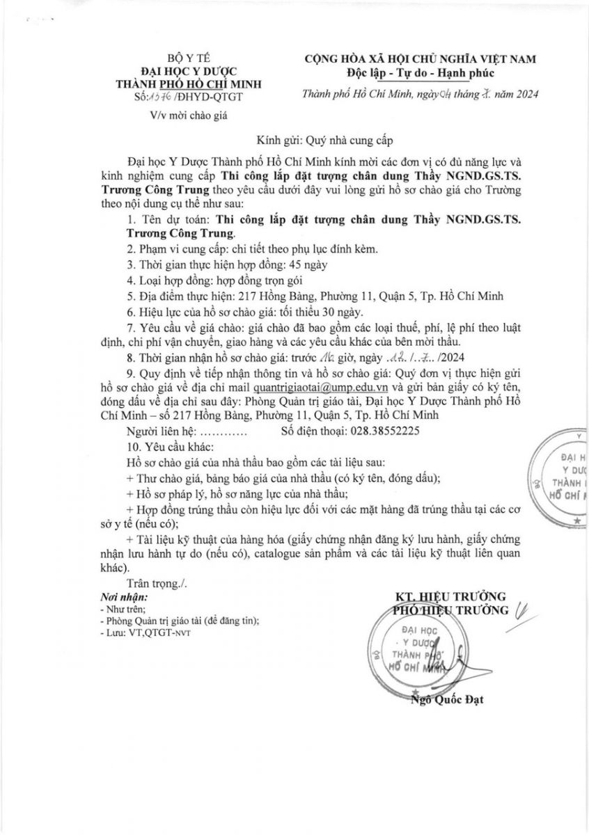 vx88 code mời chào giá: "Thi công lắp đặt tượng chân dung Thầy NGND.GS.TS Trương Công Trung” P.QTGT - vx88 esball vx88b