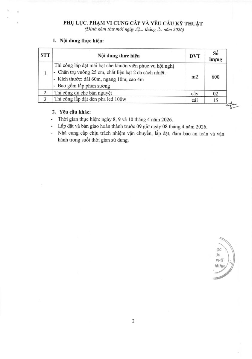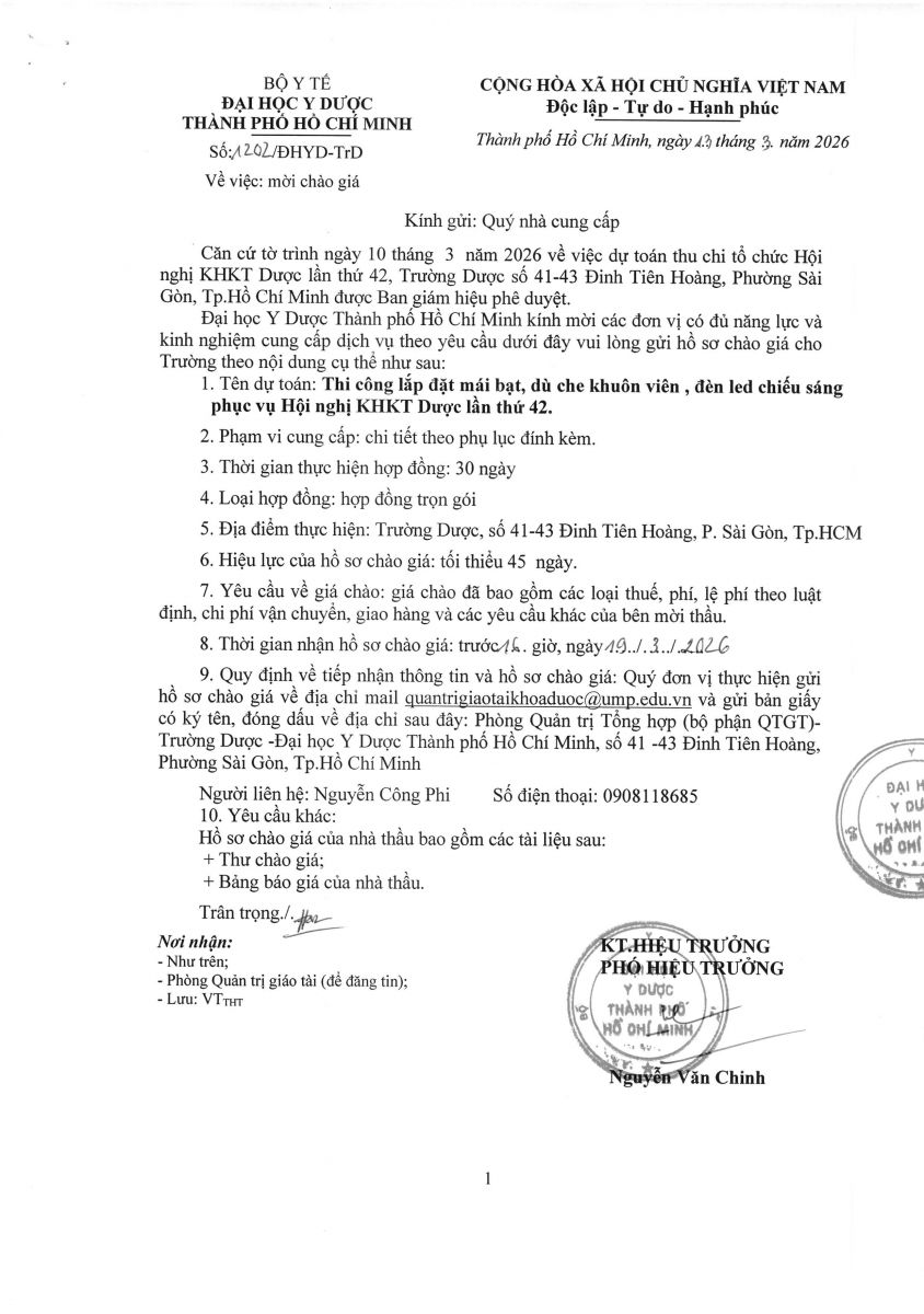 Thời gian nhận hồ sơ chào giá: từ ngày ra thông báo đến trước 16 giờ 00, ngày 19/3/2026