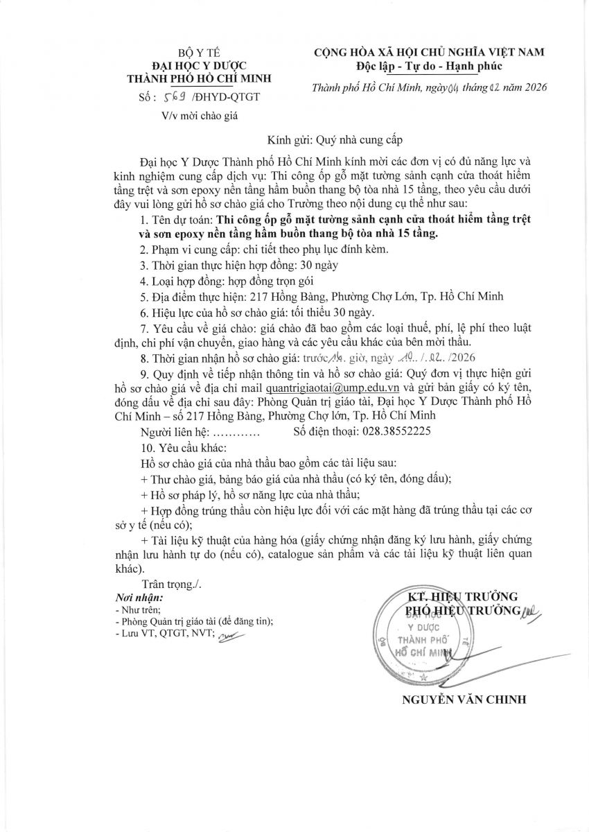 Thời gian nhận hồ sơ chào giá: từ ngày ra thông báo đến trước 16 giờ, ngày 10/02/2026