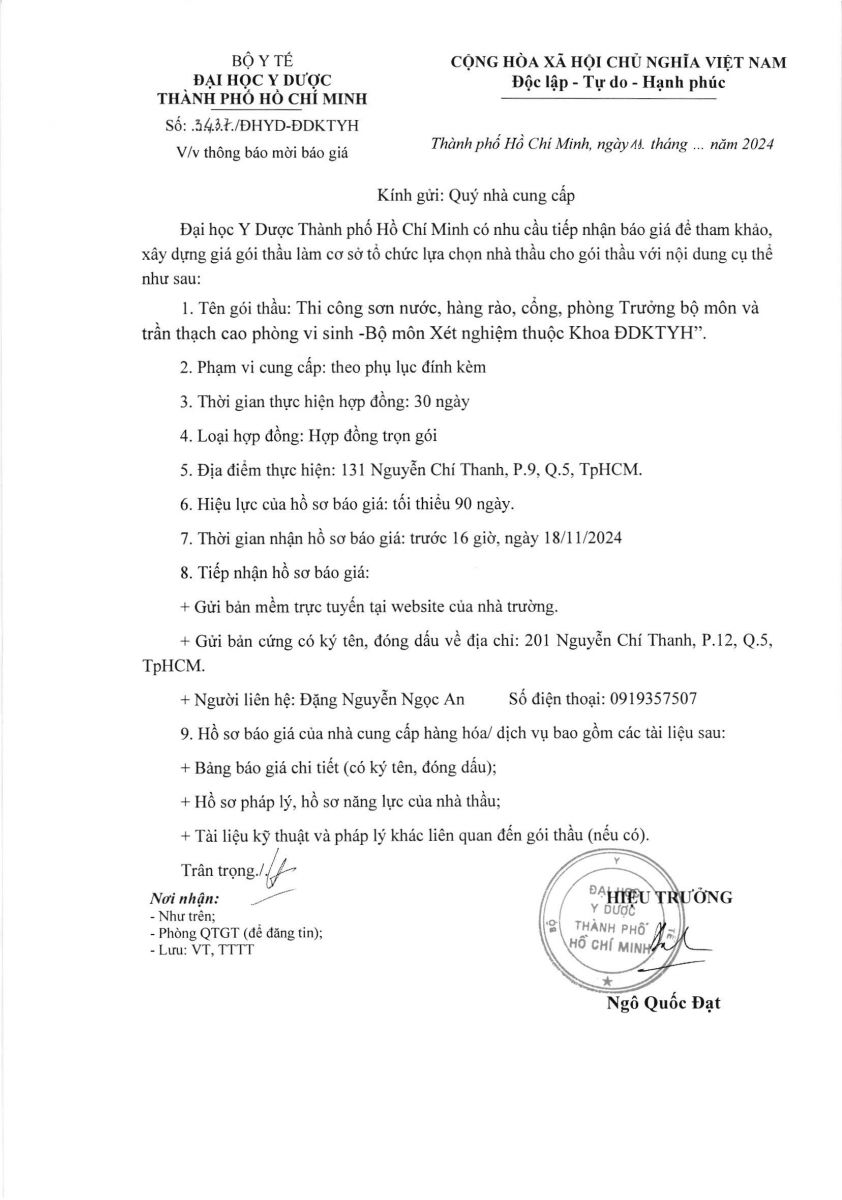 Thời gian nhận hồ sơ chào giá: từ ngày ra thông báo đến trước 16 giờ 00 ngày 18/11/2024