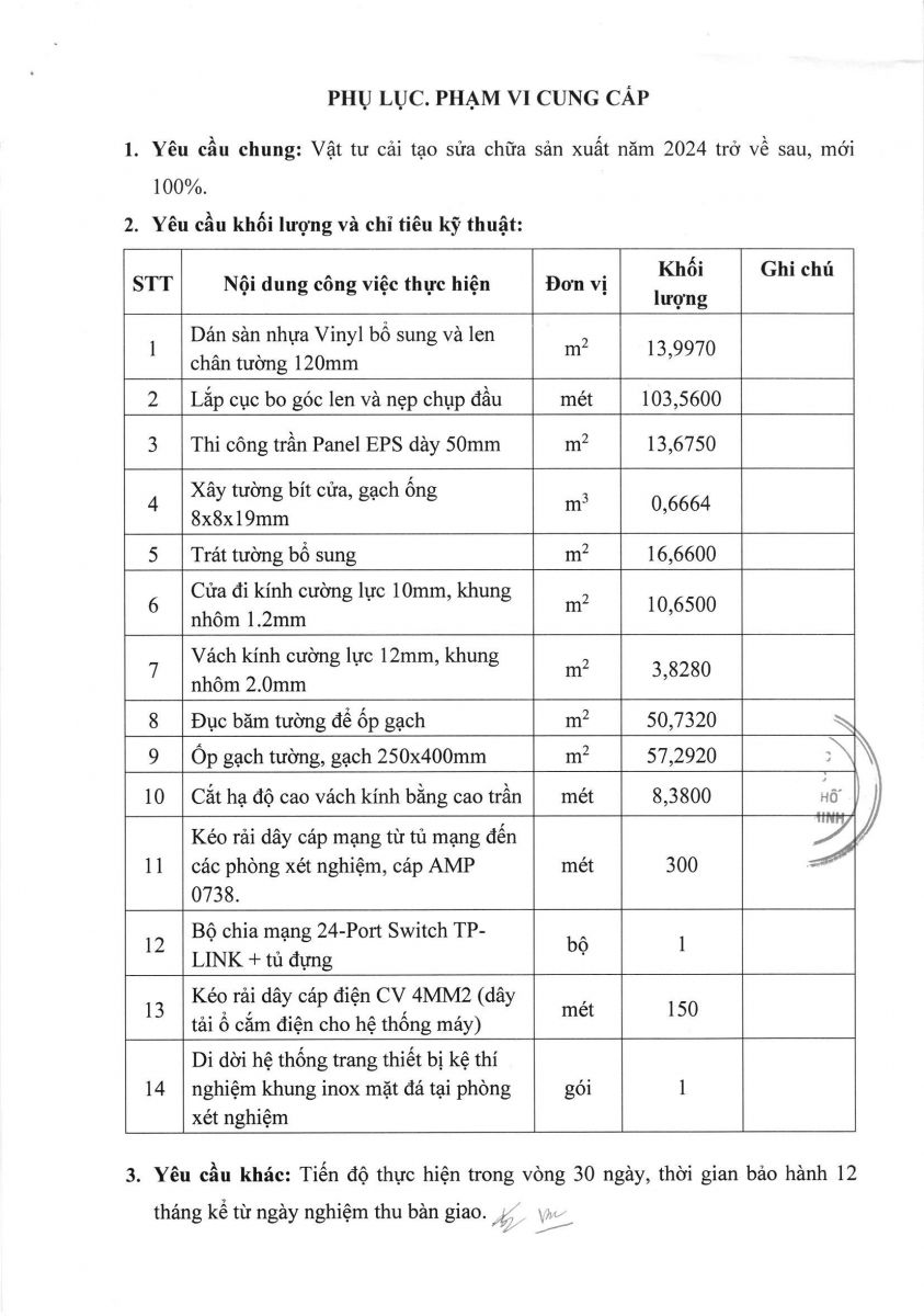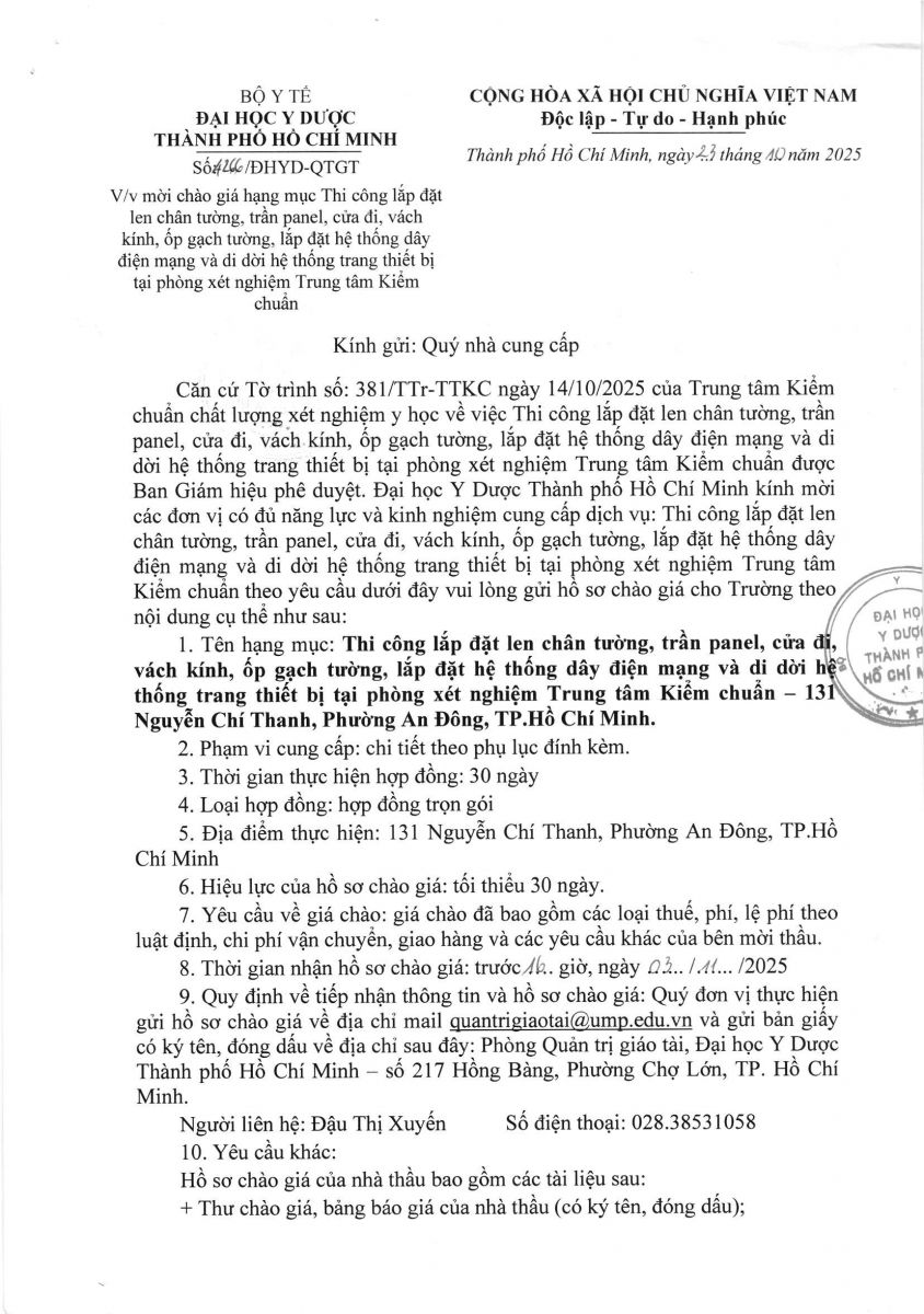 Thời gian nhận hồ sơ chào giá: từ ngày ra thông báo đến trước 16 giờ, ngày 03/11/2025