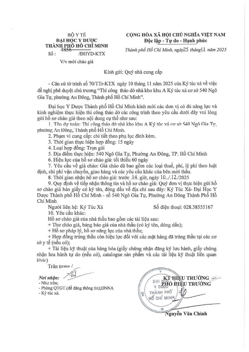 Thời gian nhận hồ sơ chào giá: từ ngày ra thông báo đến trước 14 giờ, ngày 10/12/2025