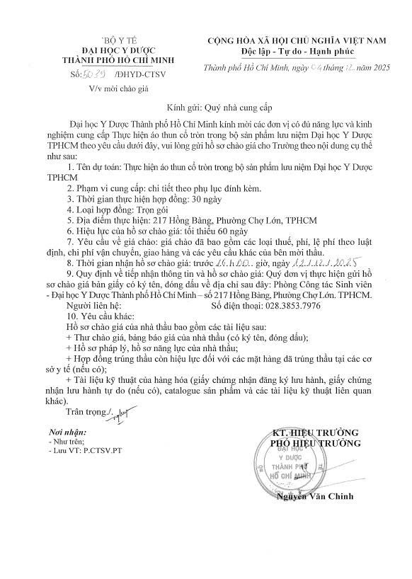 Thời gian nhận hồ sơ chào giá: từ ngày ra thông báo đến trước 16 giờ, ngày 12/12/2025