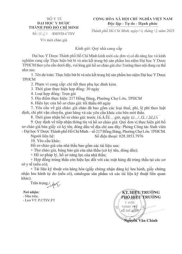 Thời gian nhận hồ sơ chào giá: từ ngày ra thông báo đến trước 16 giờ, ngày 12/12/2025