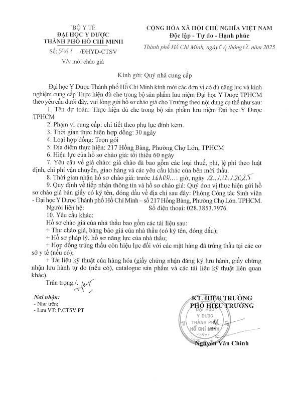 Thời gian nhận hồ sơ chào giá: từ ngày ra thông báo đến trước 16 giờ, ngày 12/12/2025
