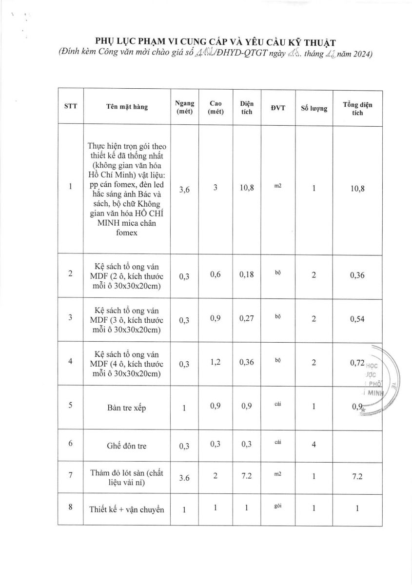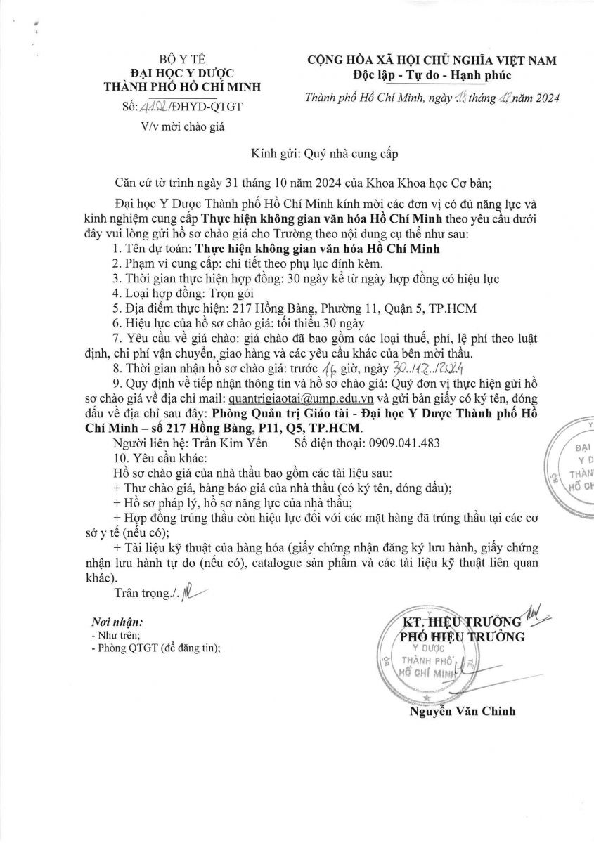 Thời gian nhận hồ sơ chào giá: từ ngày ra thông báo đến trước 16g00 ngày 30/12/2024