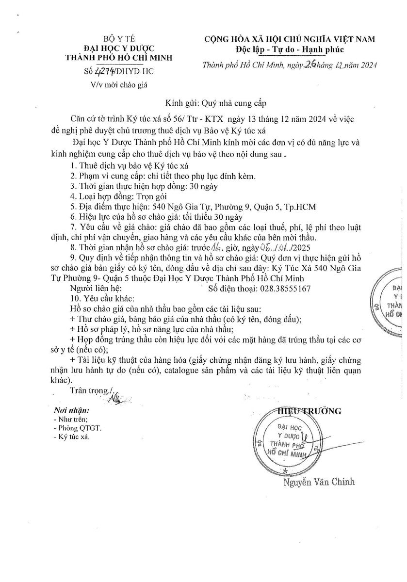 Thời gian nhận hồ sơ chào giá: từ ngày ra thông báo đến trước 16 giờ, ngày 06/01/2025