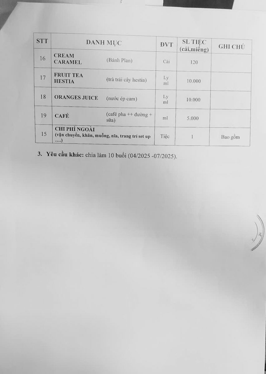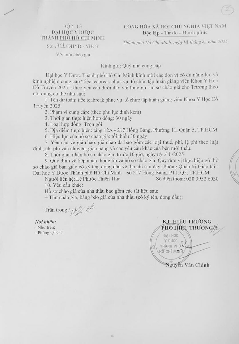 Thời gian nhận hồ sơ chào giá: từ ngày ra thông báo đến trước 10 giờ, ngày 17/4/2025