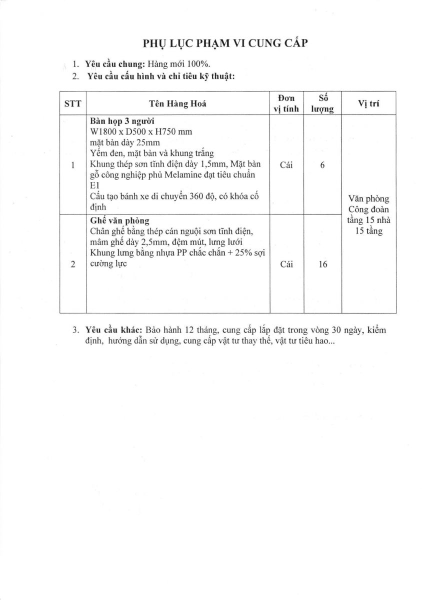 vx88 code mời chào giá: "Trang bị mới bộ bàn ghế họp cho Văn phòng công đoàn tầng 15” - vx88 esball vx88b