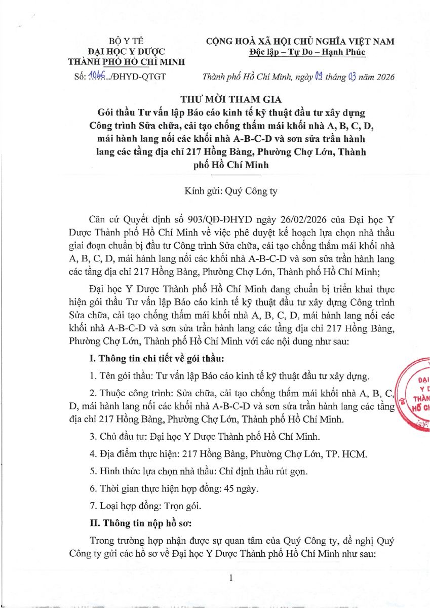 Thời gian nhận hồ sơ chào giá: từ ngày ra thông báo đến trước 16 giờ 00, ngày 16/3/2026