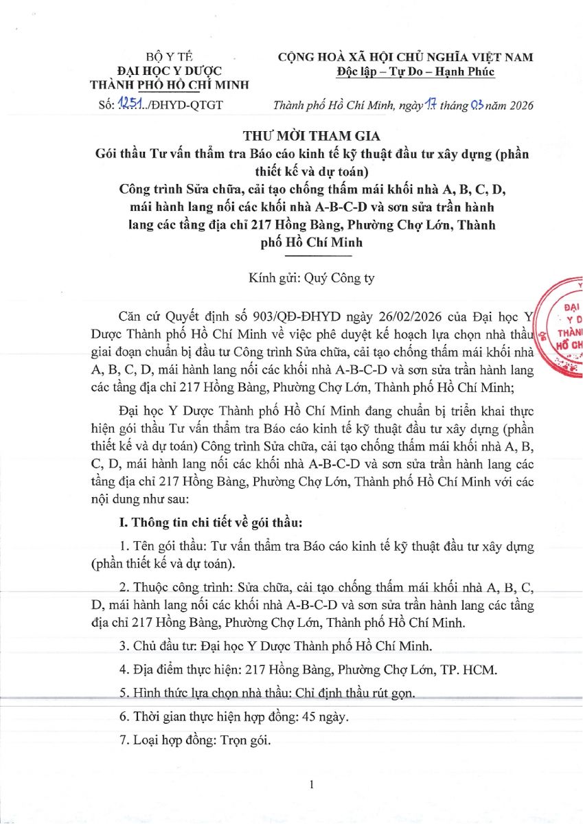 Thời gian nhận hồ sơ chào giá: từ ngày ra thông báo đến trước 16 giờ 00, ngày 24/3/2026