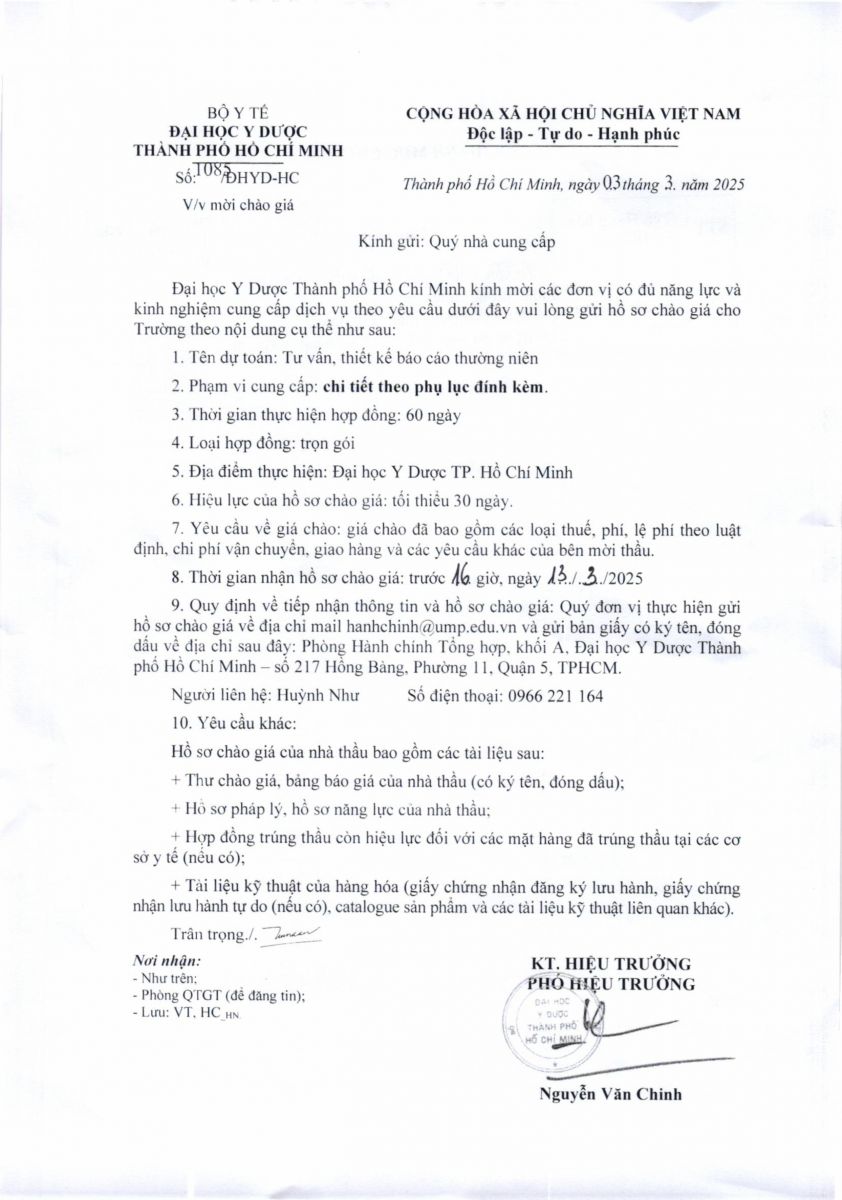 Thời gian nhận hồ sơ chào giá: từ ngày ra thông báo đến trước 16 giờ, ngày 13/3/2025