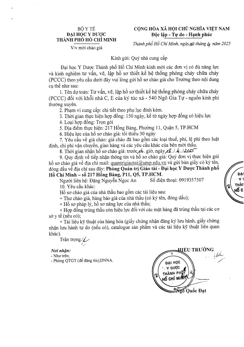 Thời gian nhận hồ sơ chào giá: từ ngày ra thông báo đến 16 giờ, ngày 18/4/2025