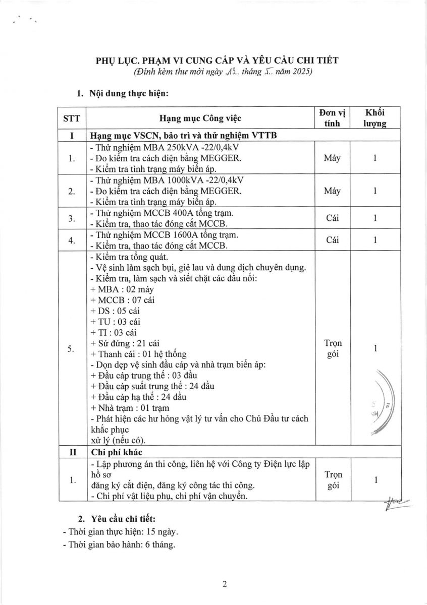 Thời gian nhận hồ sơ chào giá: từ ngày ra thông báo đến trước 16 giờ, ngày 20/5/2025