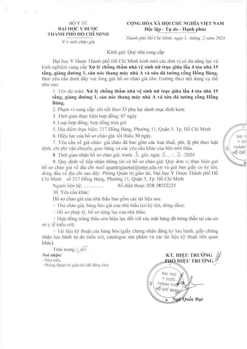 Thời gian nhận hồ sơ chào giá: từ ngày ra thông báo đến trước 08 giờ 00' ngày 08/3/2024