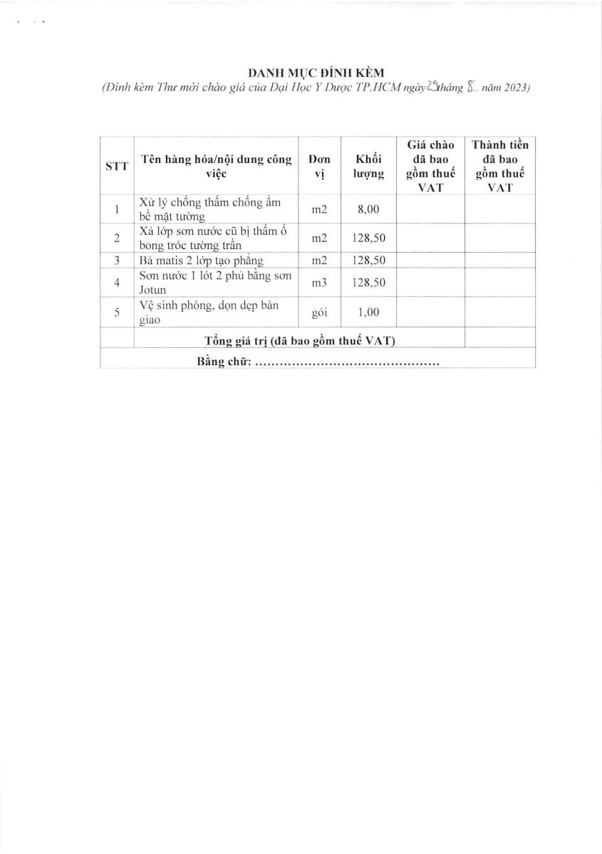 Thời gian nhận hồ sơ chào giá: từ ngày ra thông báo đến trước 15 g 00 ngày 05/9/2023