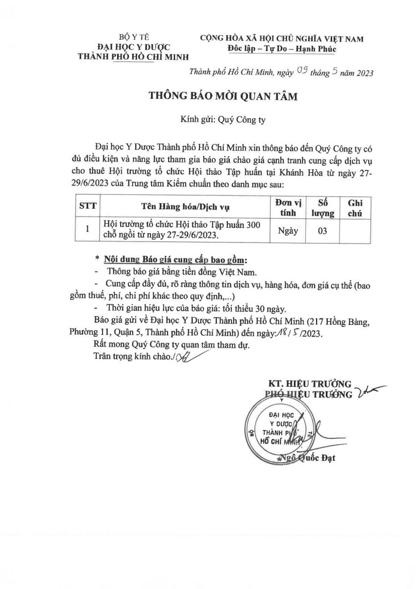 Thời gian nhận hồ sơ chào giá: Từ ngày ra thông báo đến ngày 18/5/2023