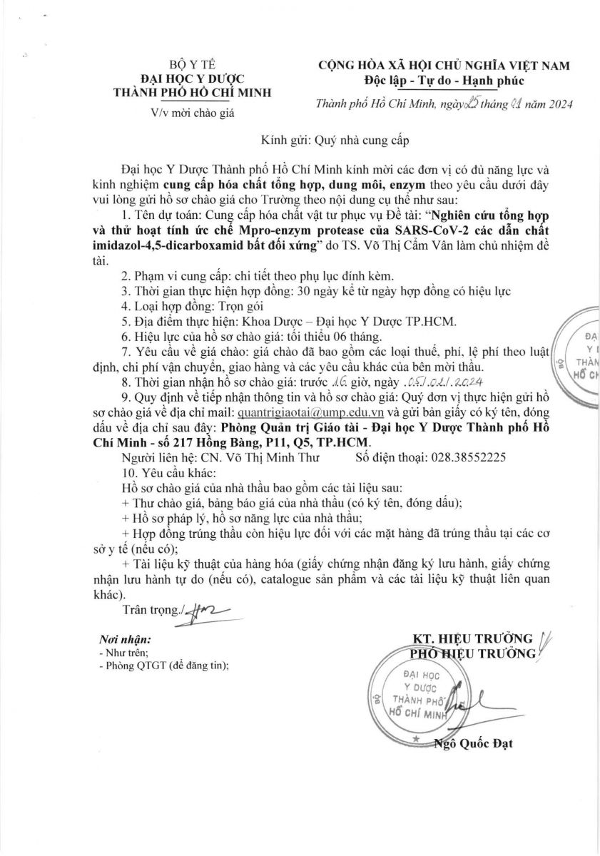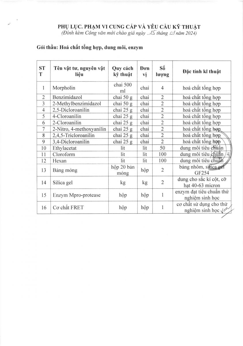 Thời gian nhận hồ sơ chào giá: từ ngày ra thông báo đến trước 16g00 ngày 05/02/2024