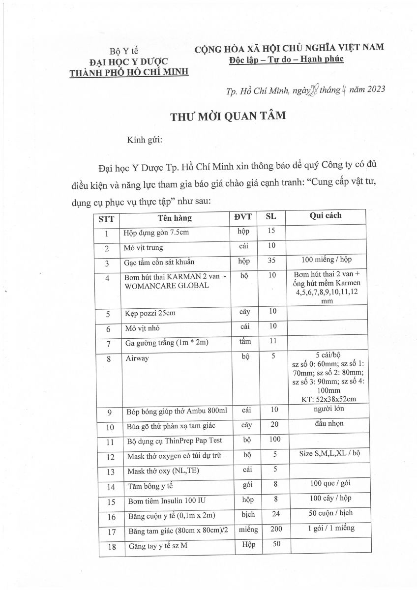 Thời gian nhận hồ sơ chào giá: Từ ngày ra thông báo đến ngày 06/5/2023