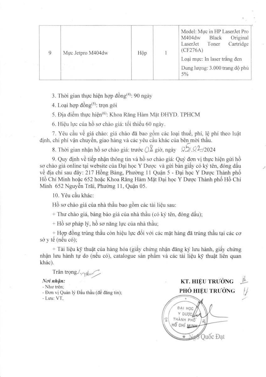 Thời gian nhận hồ sơ chào giá: từ ngày ra thông báo đến trước 08g00 ngày 05/02/2024
