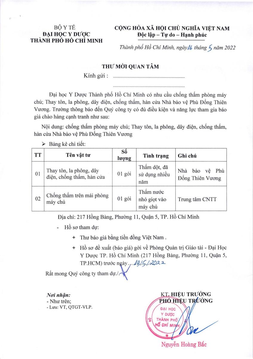 Thời gian nhận báo giá từ ngày 16/5/2022 đến ngày 19/5/2022