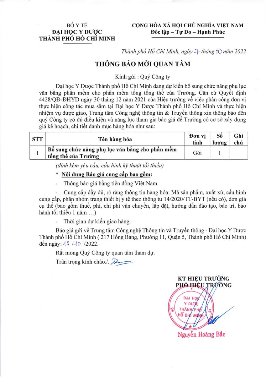 Thời gian nhận hồ sơ chào giá: từ ngày ra thông báo đến ngày 18/10/2022