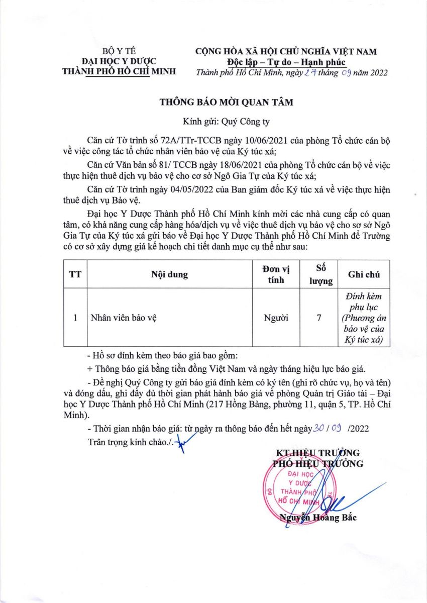 Thời gian nhận hồ sơ chào giá: từ ngày ra thông báo đến ngày 30/9/2022
