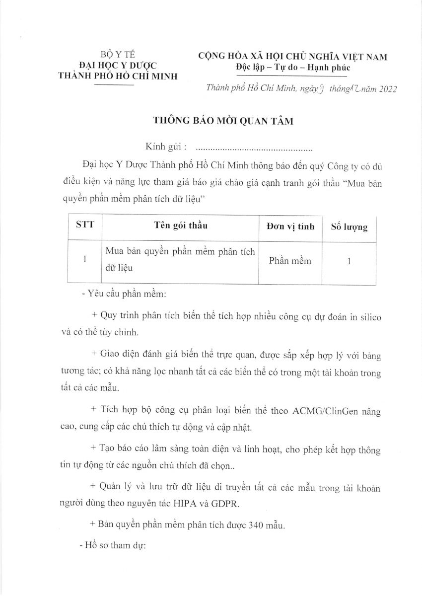 Thời gian nhận hồ sơ chào giá: từ ngày ra thông báo đến ngày 13/12/2022