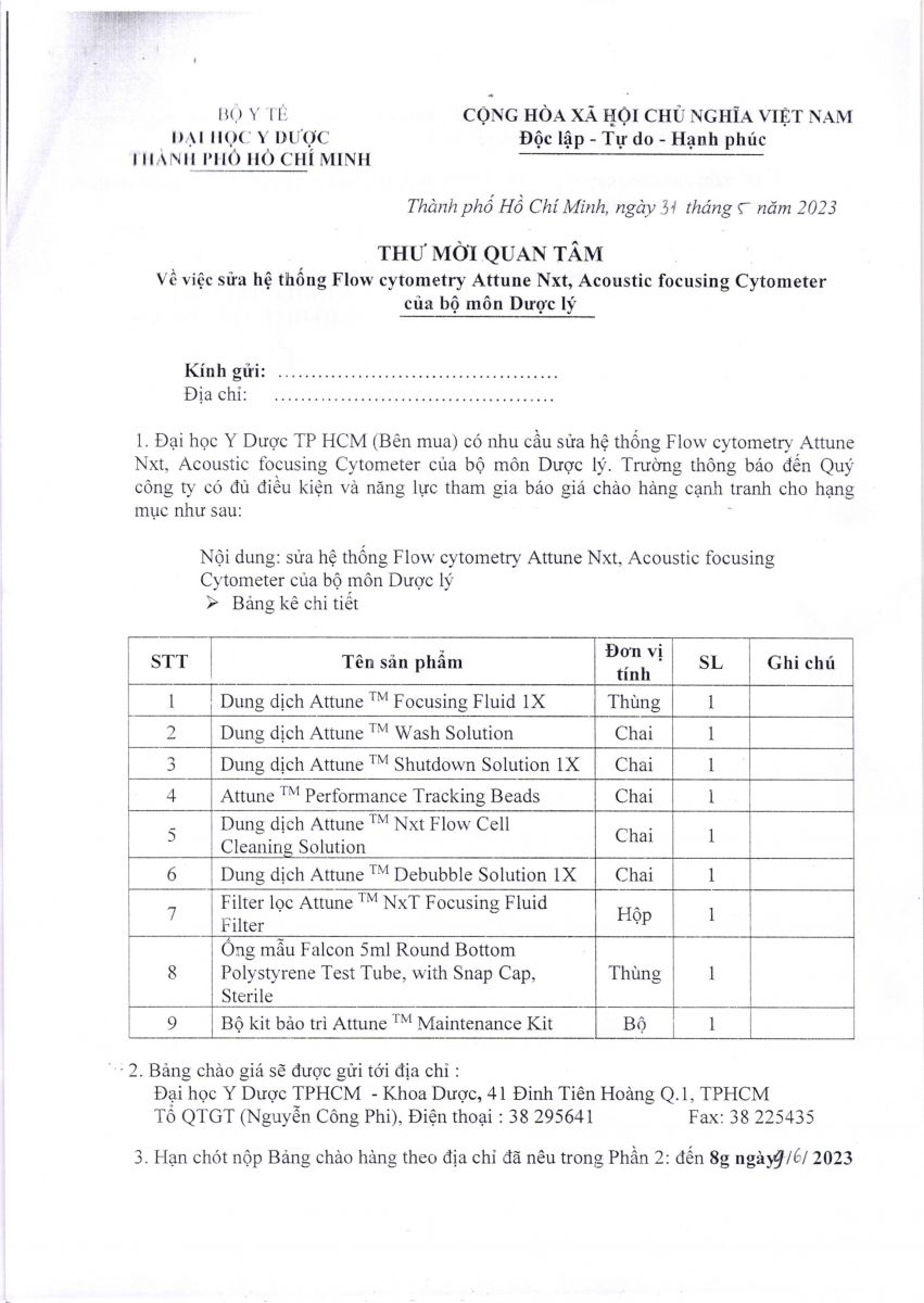 Thời gian nhận hồ sơ chào giá: từ ngày ra thông báo đến 8g00 ngày 09/6/2023