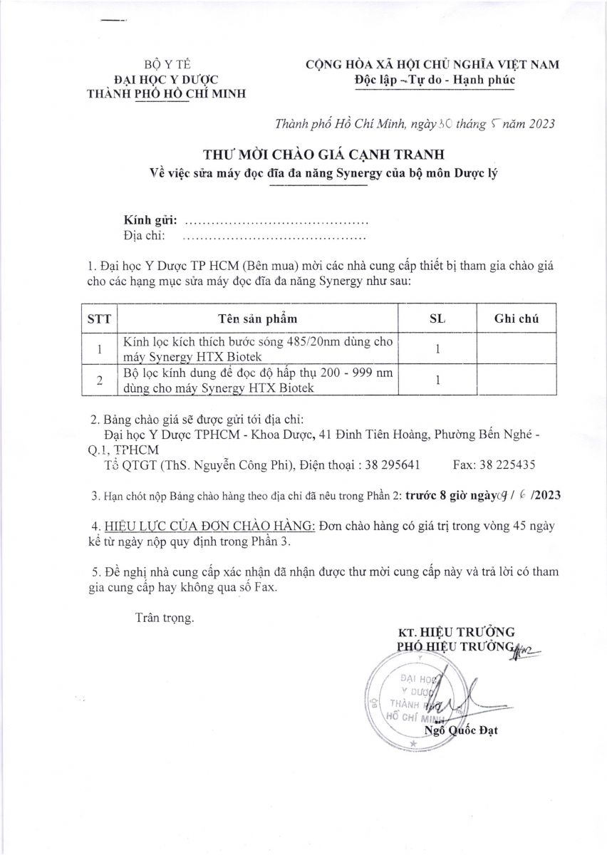 Thời gian nhận hồ sơ chào giá: từ ngày ra thông báo đến 8g 00 ngày 09/6/2023