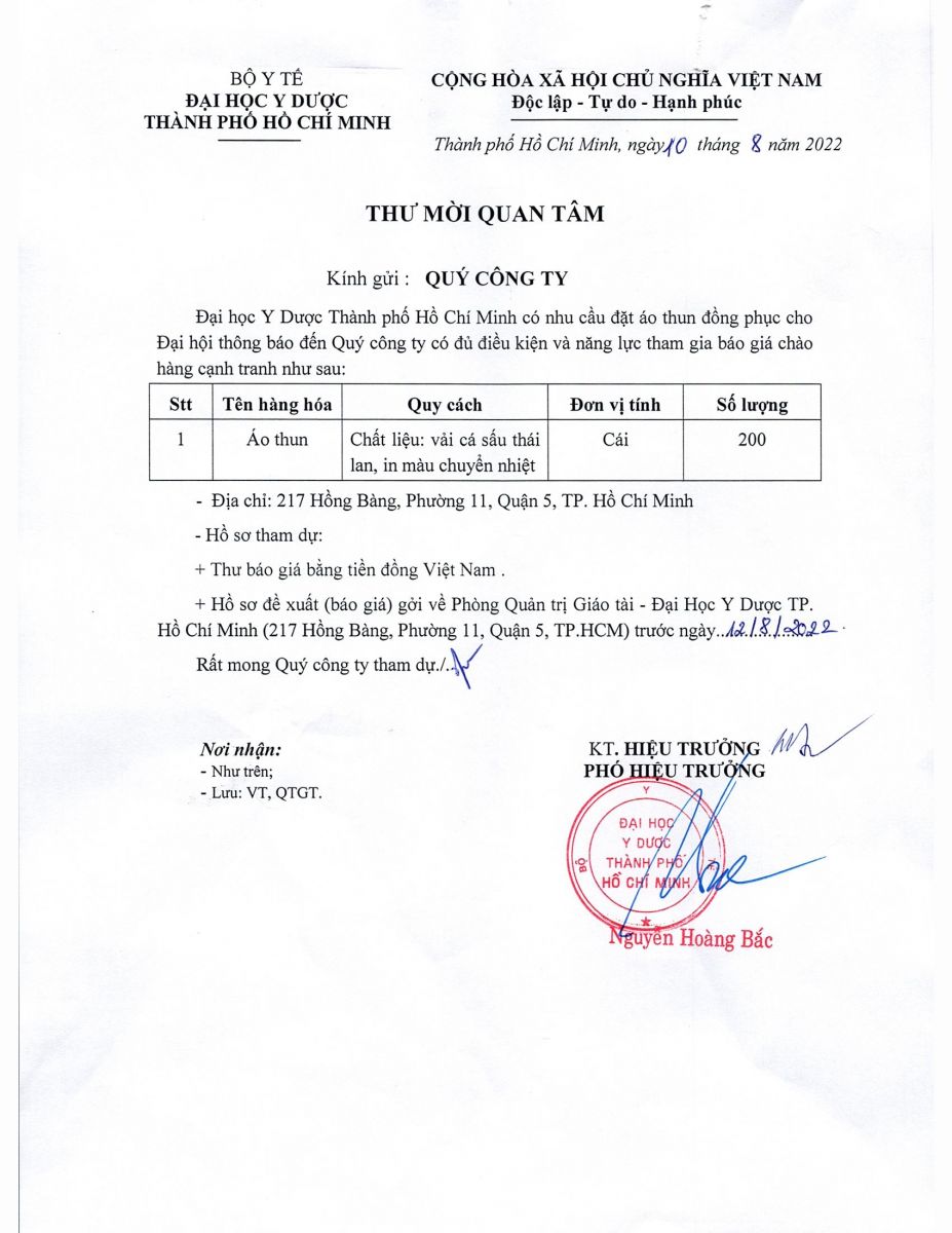 Thư mời quan tâm chào giá: "Áo thun đồng phục cho Đại hội" VPĐ - vx88 esball TP.vx88m