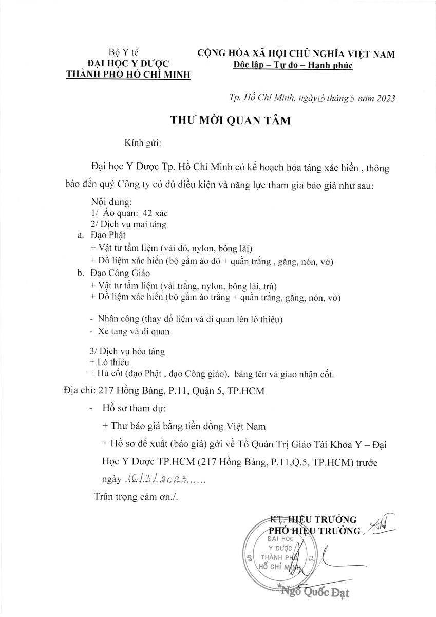 Thời gian nhận hồ sơ chào giá: từ ngày ra thông báo đến trước ngày 16/3/2023