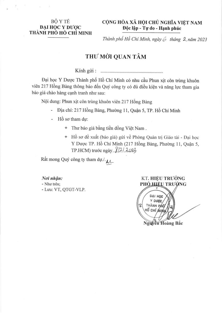Thời gian nhận hồ sơ chào giá: từ ngày ra thông báo đến ngày 08/02/2023
