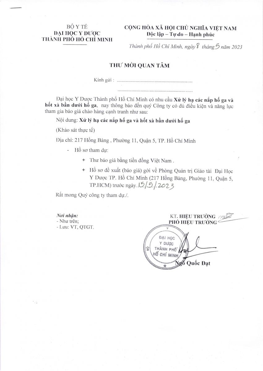 Thời gian nhận hồ sơ chào giá: từ ngày ra thông báo đến trước ngày 15/5/2023