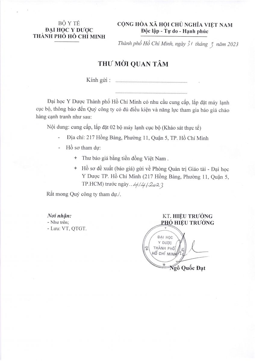 Thời gian nhận hồ sơ chào giá: từ ngày ra thông báo đến trước ngày 04/4/2023