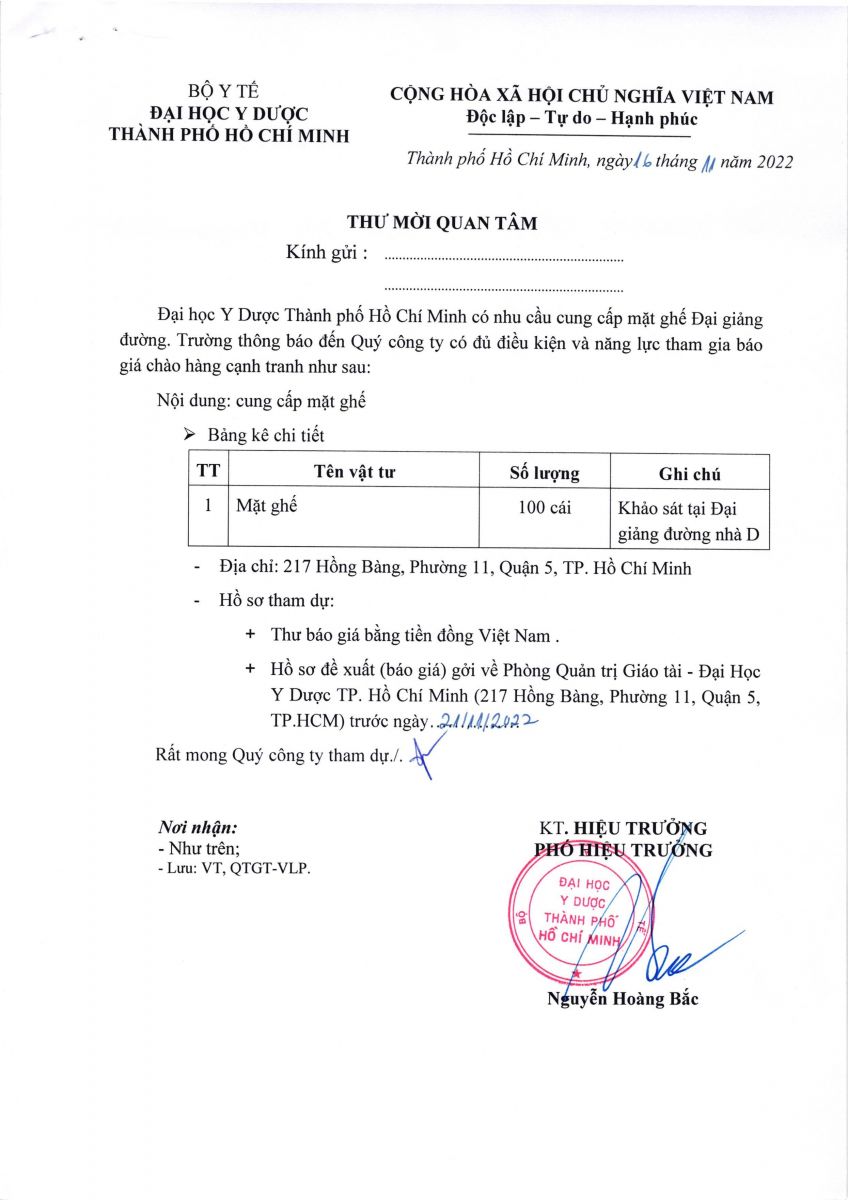 Thời gian nhận hồ sơ chào giá: từ ngày ra thông báo đến ngày 21/11/2022
