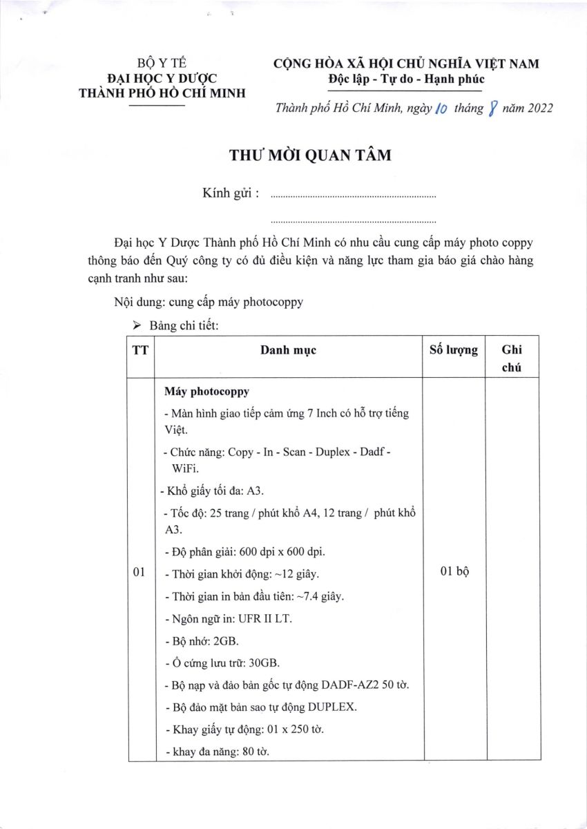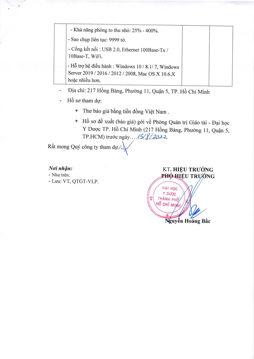 Thời gian nhận báo giá: từ ngày ra thông báo đến ngày 15/8/2022