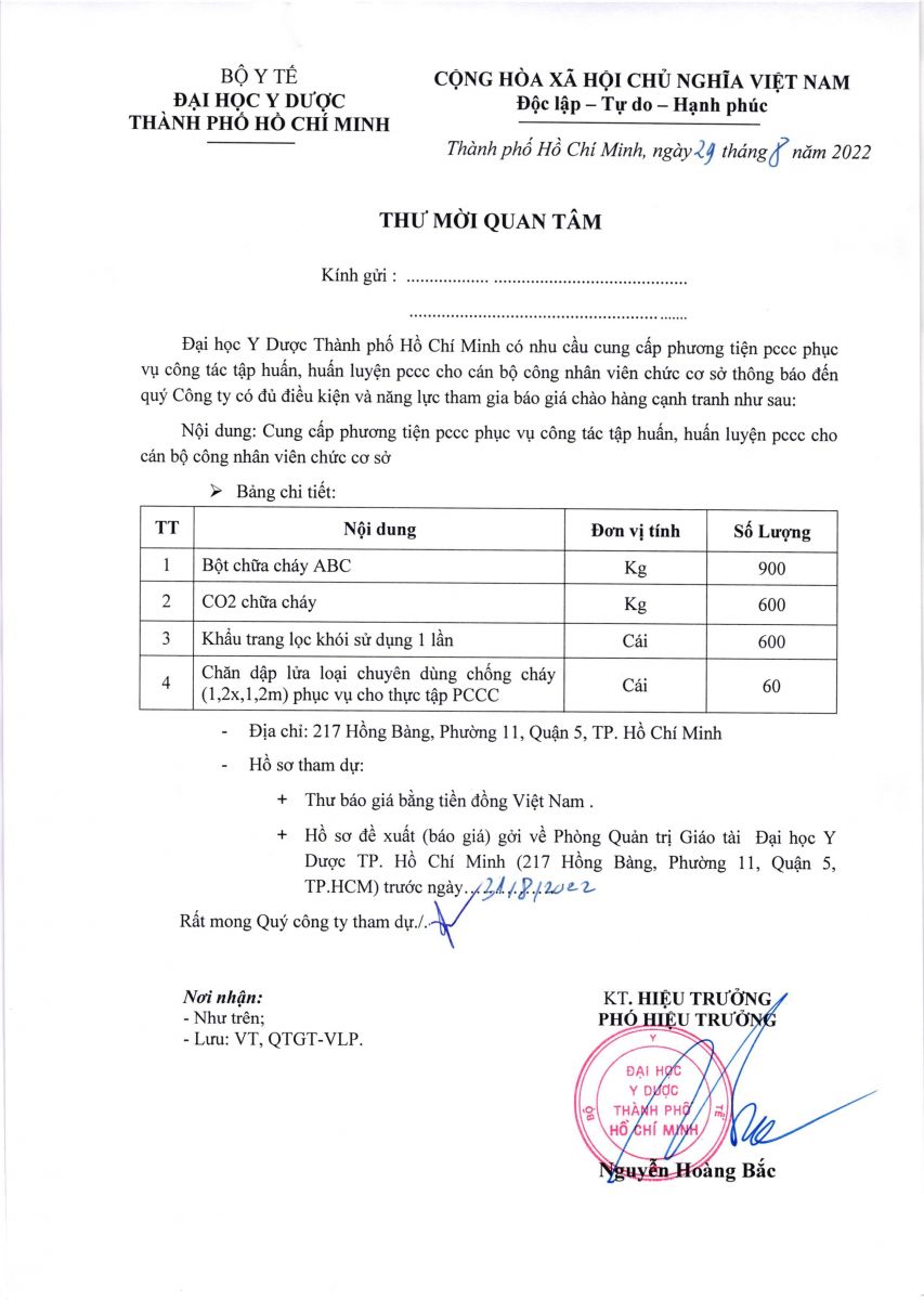 Thời gian nhận báo giá: từ ngày ra thông báo đến ngày 31/8/2022