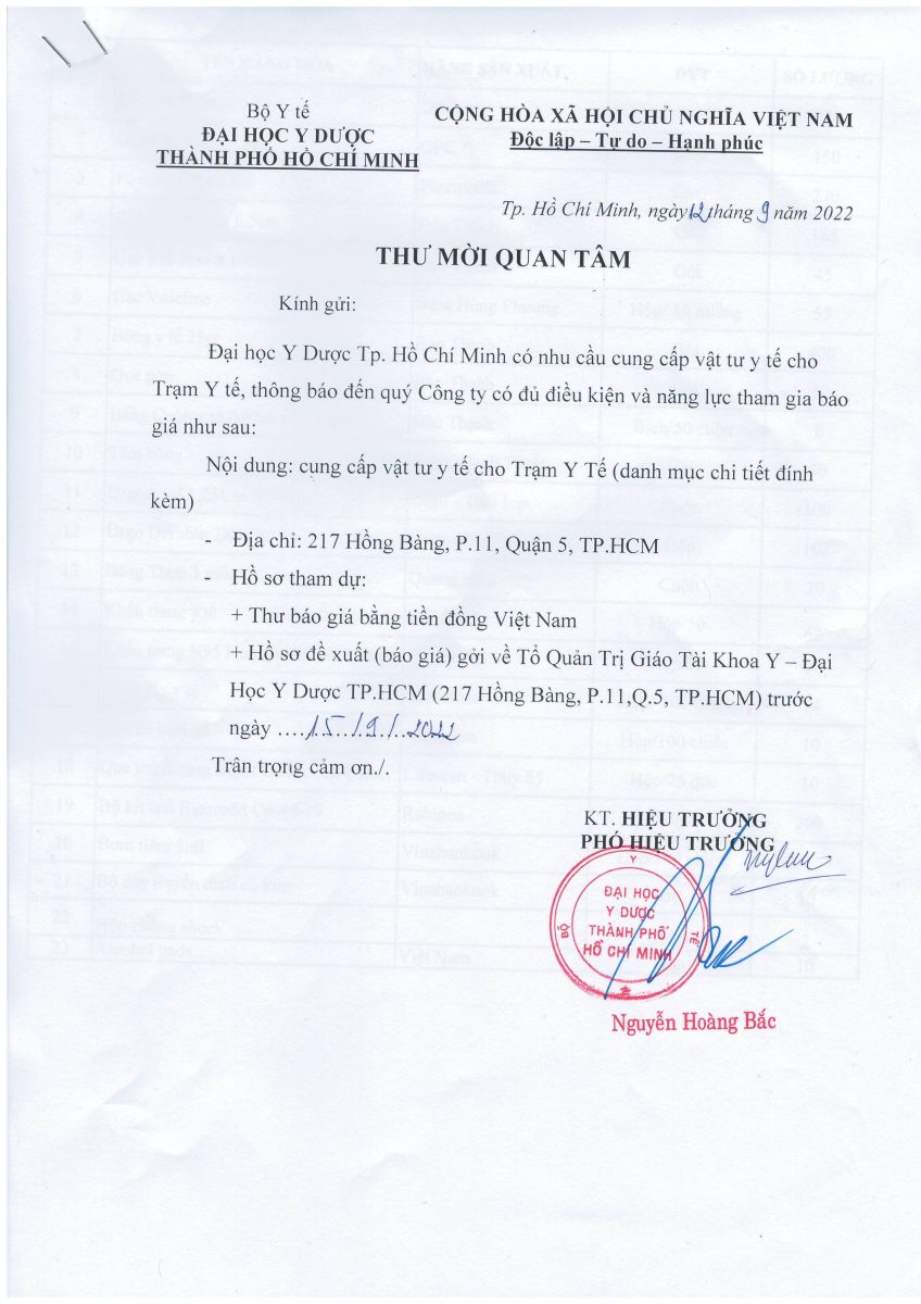Thời gian nhận báo giá: từ ngày ra thông báo đến ngày 15/9/2022