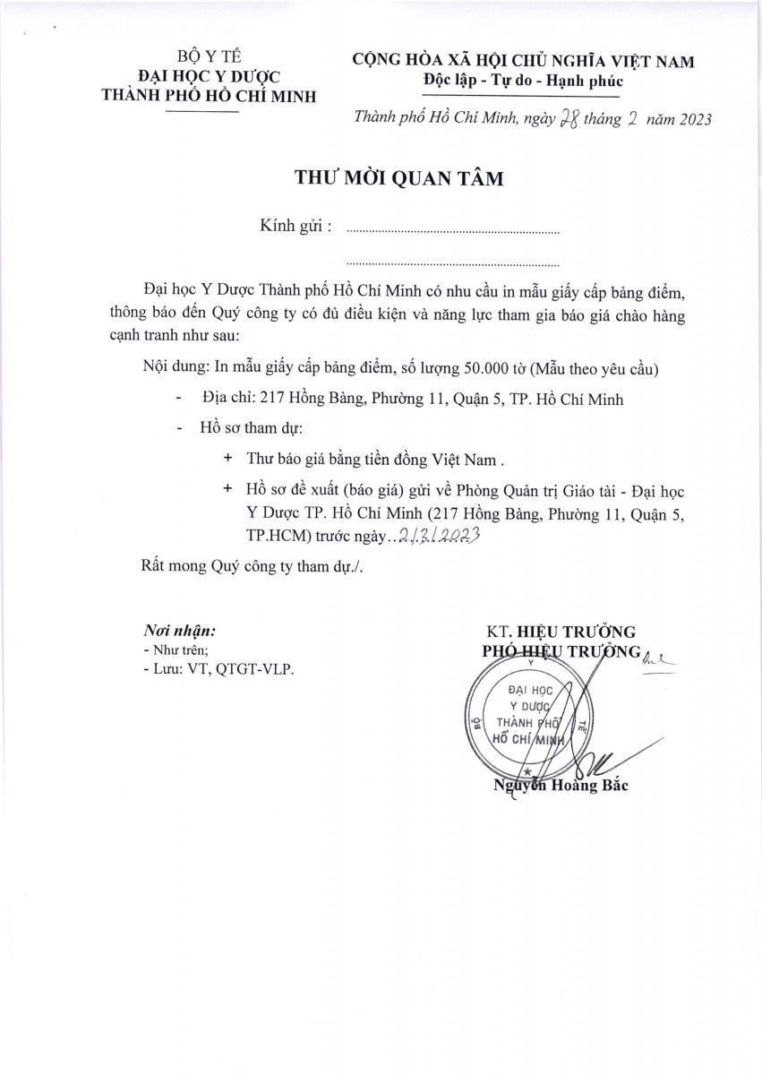 Thời gian nhận hồ sơ chào giá: từ ngày ra thông báo đến trước ngày 02/3/2023