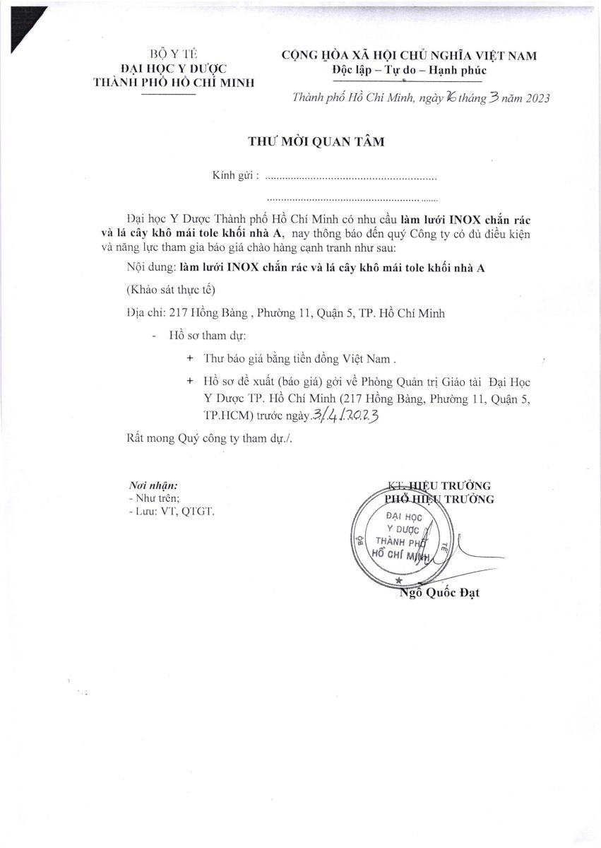 Thư mời quan tâm chào giá: "Làm lưới inox chắn rác và lá cây khô mái tole khối nhà A" (Khảo sát thực tế) - vx88 esball TP.vx88m