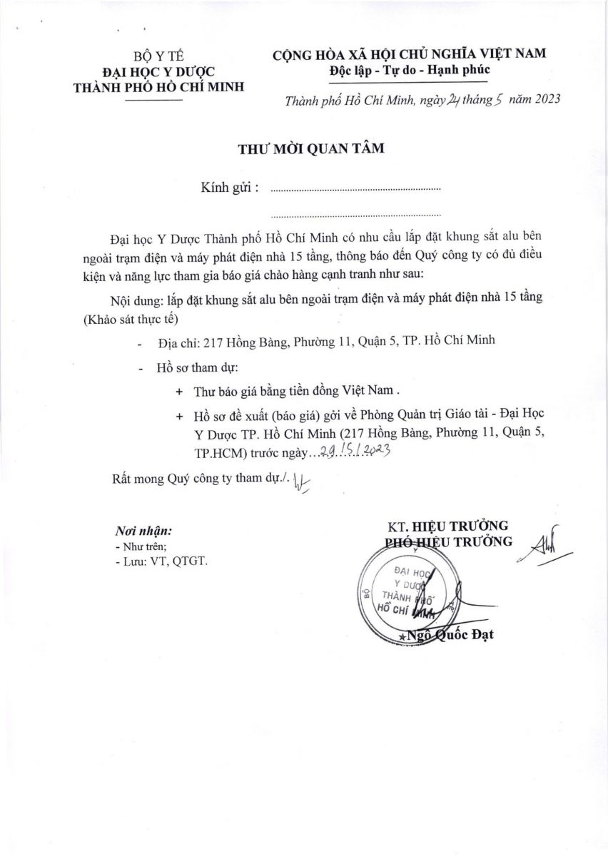 Thời gian nhận hồ sơ chào giá: từ ngày ra thông báo đến trước ngày 29/5/2023