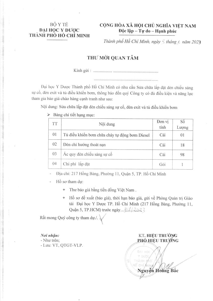 Thời gian nhận hồ sơ chào giá: từ ngày ra thông báo đến ngày 09/01/2023