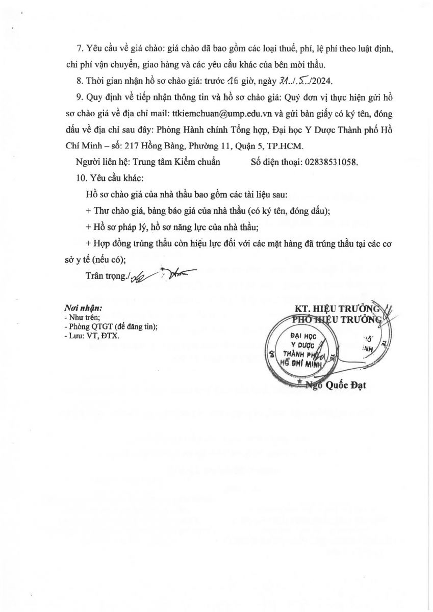 Thời gian nhận hồ sơ chào giá: từ ngày ra thông báo đến trước 16 giờ 00' ngày 31/5/2024