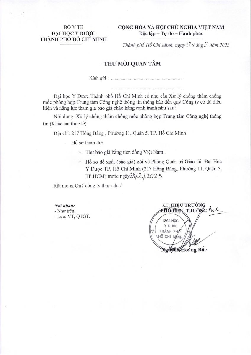 Thời gian nhận hồ sơ chào giá: từ ngày ra thông báo đến trước ngày 28/02/2023
