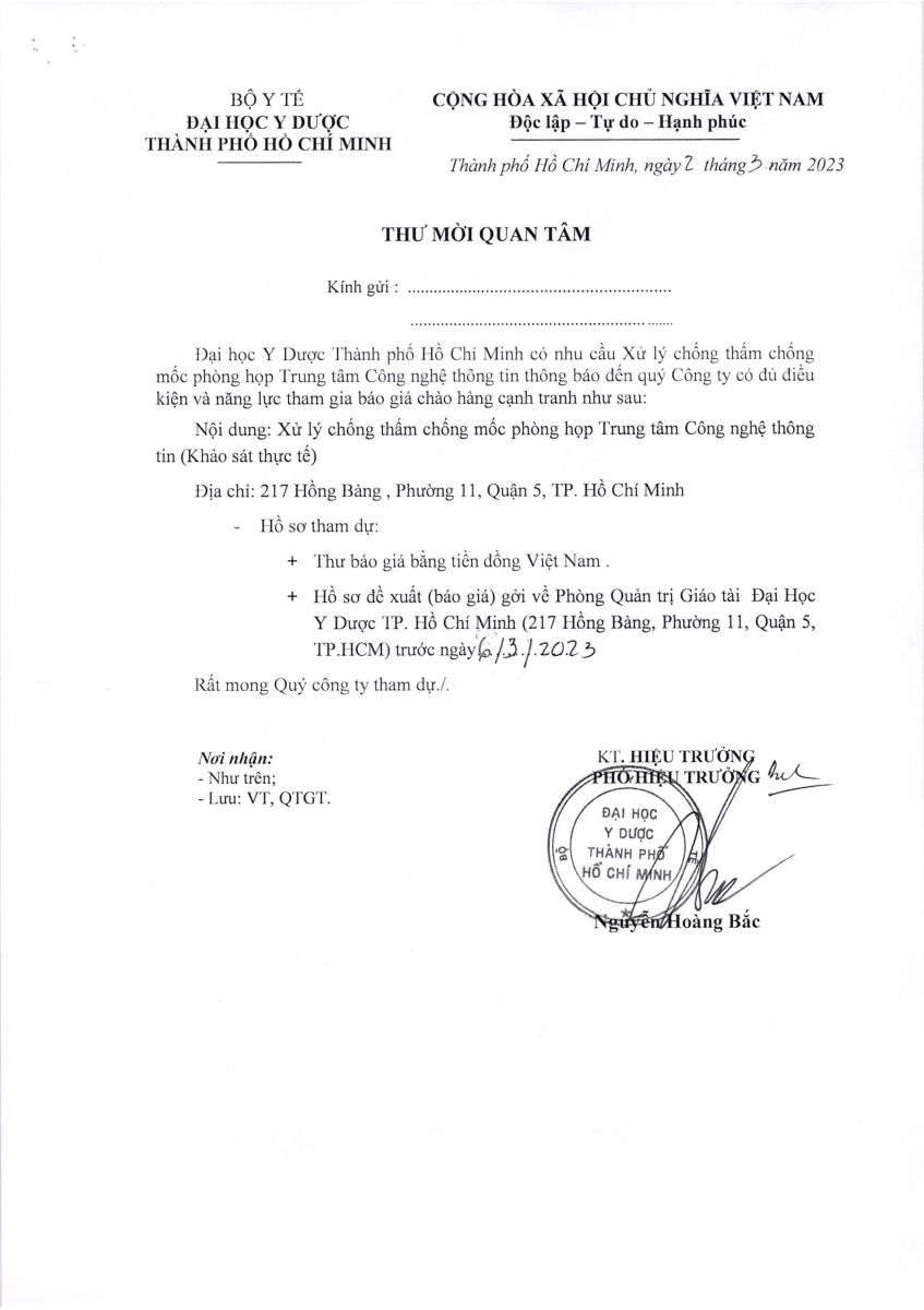Thời gian nhận hồ sơ chào giá: từ ngày ra thông báo đến trước ngày 06/3/2023