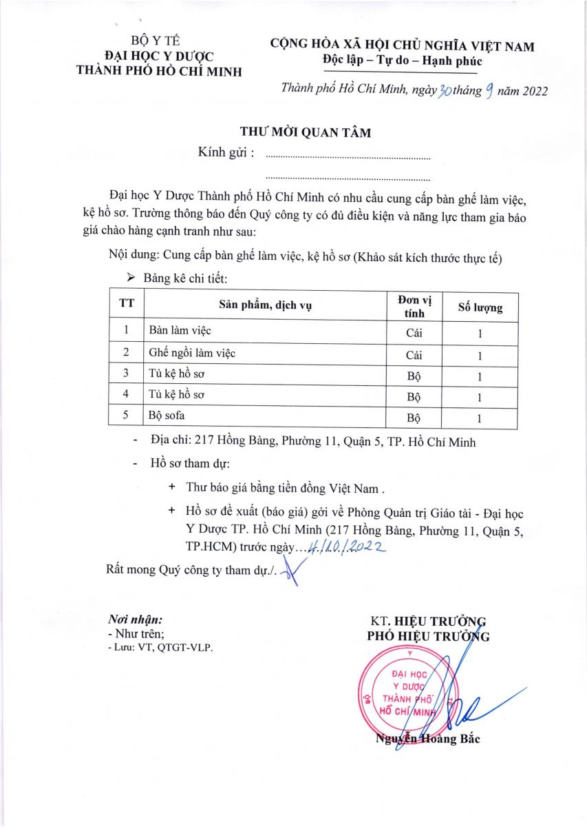 Thời gian nhận hồ sơ chào giá: từ ngày ra thông báo đến ngày 04/10/2022