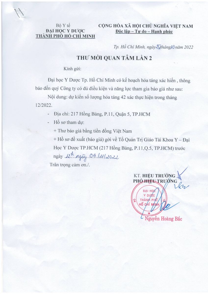 Thư mời quan tâm cung cấp dịch vụ: "Hỏa táng xác hiến" Khoa Y - vx88 esball vx88b ( lần 2)