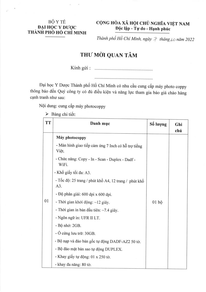 4. Thư mời quan tâm: "Cung cấp máy photocopy" - vx88 esball vx88b
