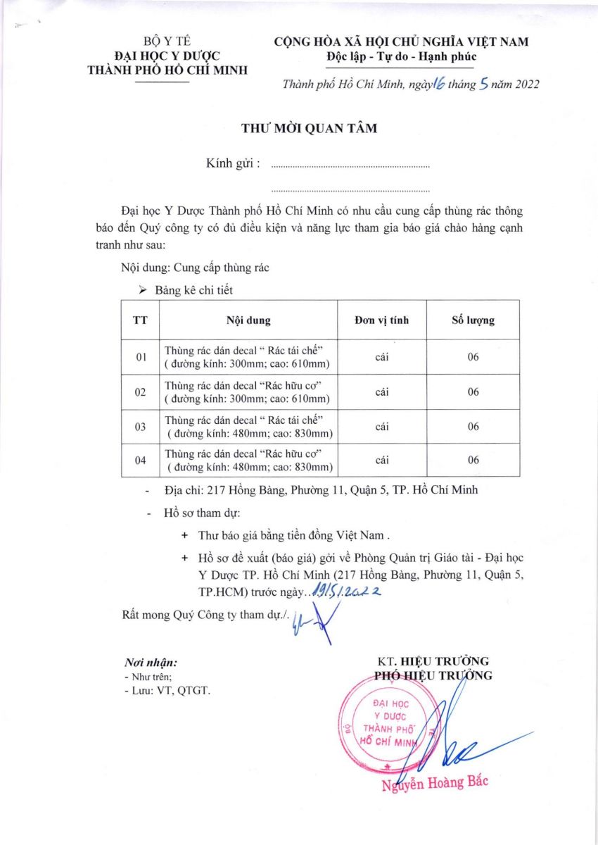 Thời gian nhận báo giá từ ngày 16/5/2022 đến ngày 19/5/2022